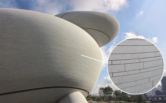深圳湾文化广场南馆(深圳科技生活馆)项目由MAD建筑事务所设计,以“水落石出”为灵感,而将这一诗意构想化为现实,正是方大的任务。远远望去,建筑如被潮汐冲刷而成的光滑鹅卵石;走近细看,才会发现其表皮是由16.3万根高度、宽度、拱度各不相同的石材条,以无规律错缝的方式“编织”而成。这种类似“毛线团”的纹理,需要让每一根石材条都精准顺应异形曲面。方大项目团队以±0.5毫米的加工精度和±1毫米的安装精度,实现了国内最高标准的石材幕墙工程,让坚硬的石材呈现出柔软而自然的包裹感,仿佛建筑拥有了生命。